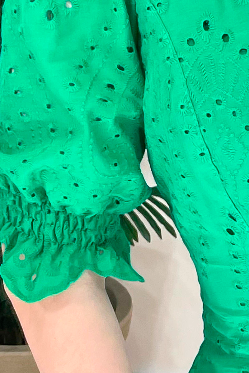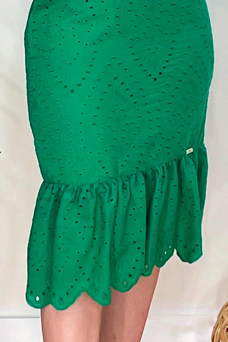 Green dress in embroidered cotton laise, lined