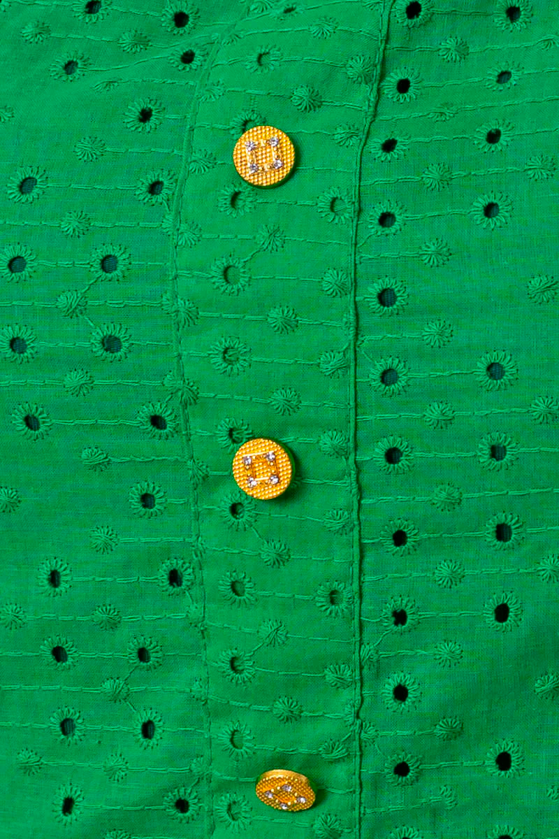 Green lace dress with gold button details